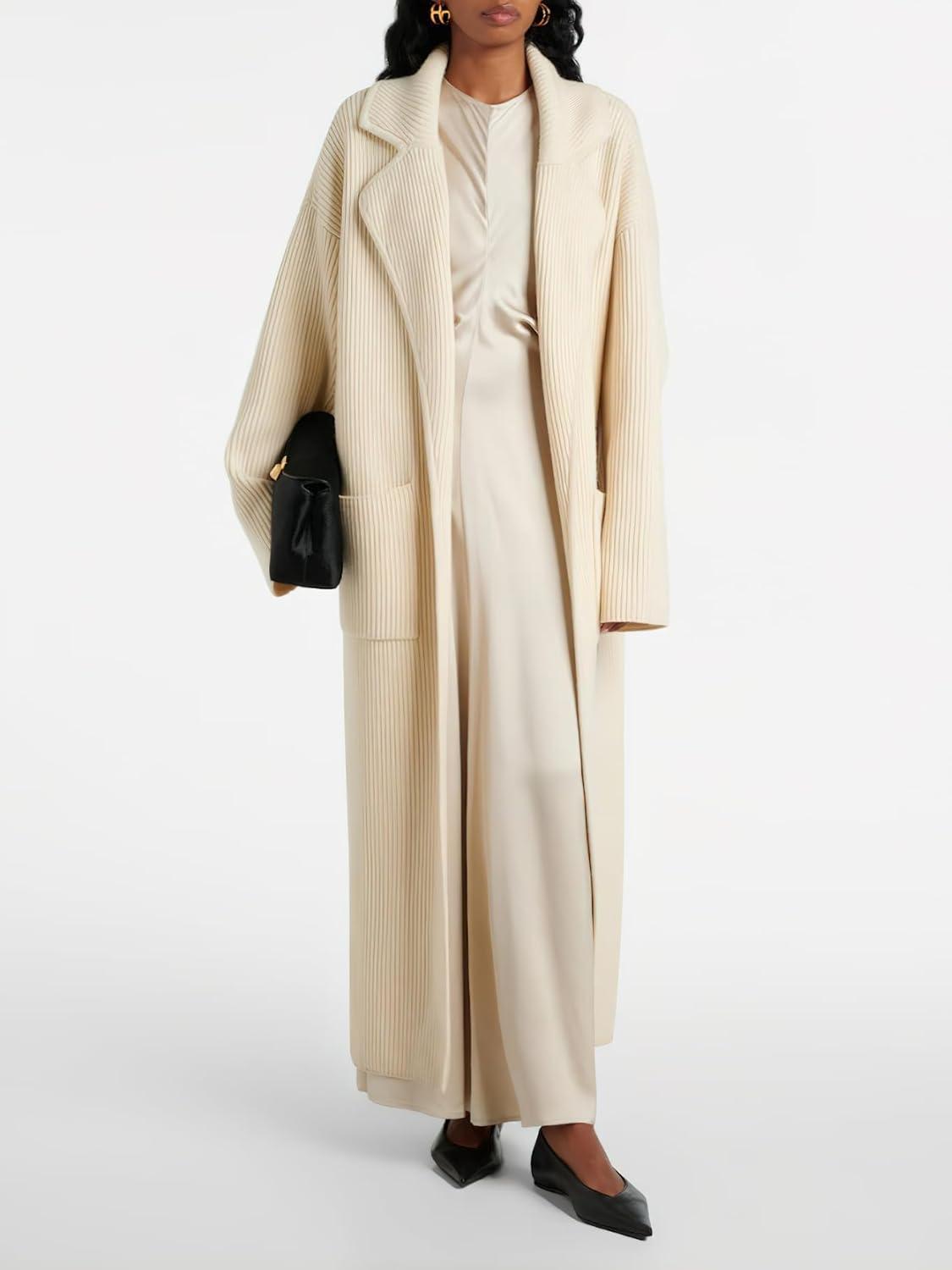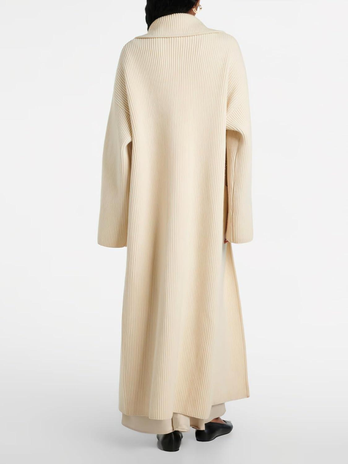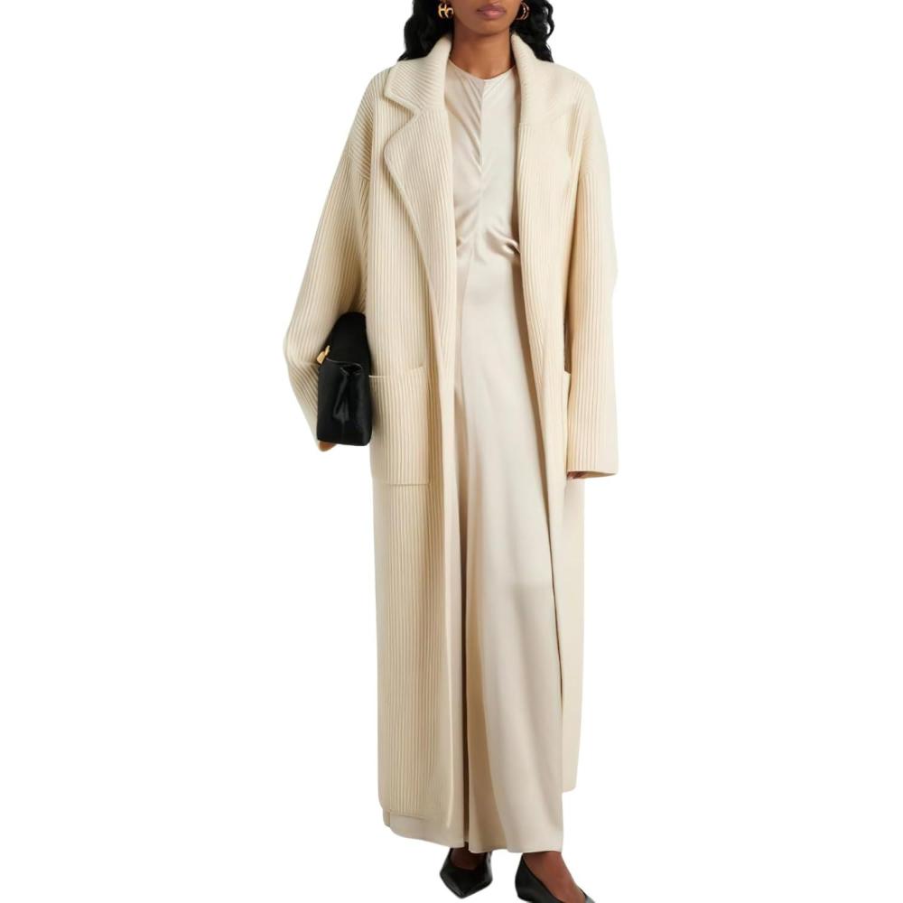 chouyatou Women’s Rib Knit Long Sweater Cardigan Notched Collar Open Front Blazer Sweater Coat Outerwear(Beige)
