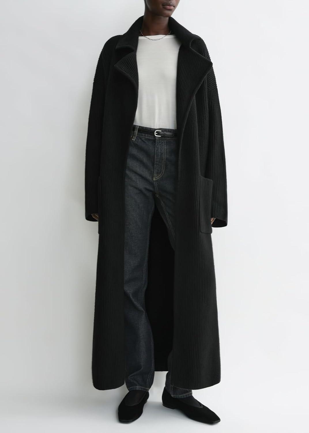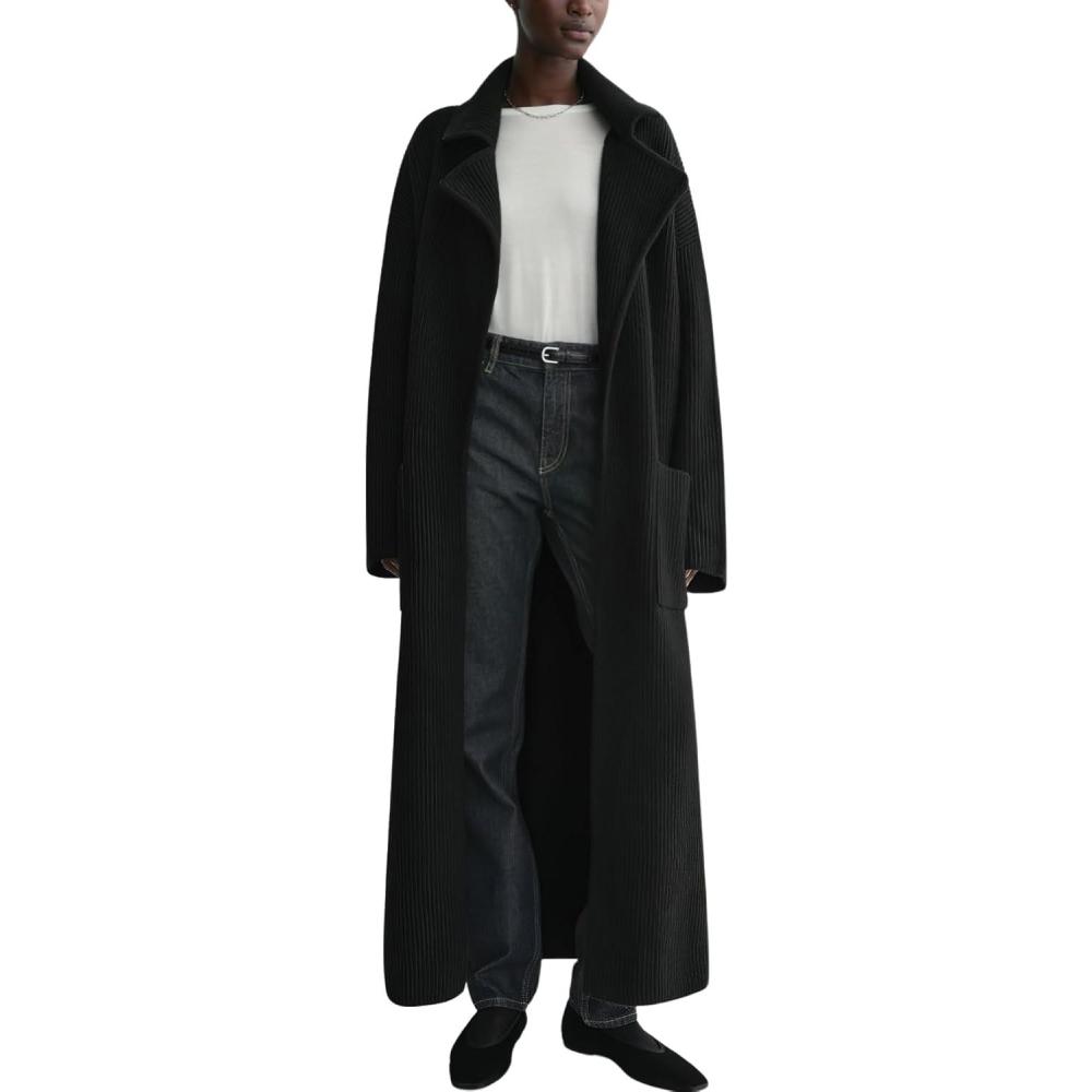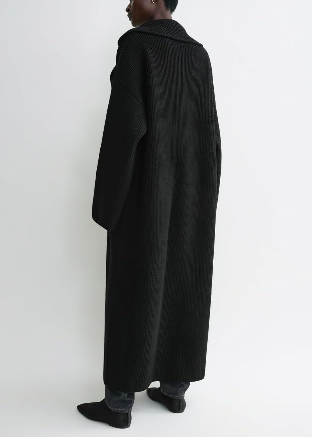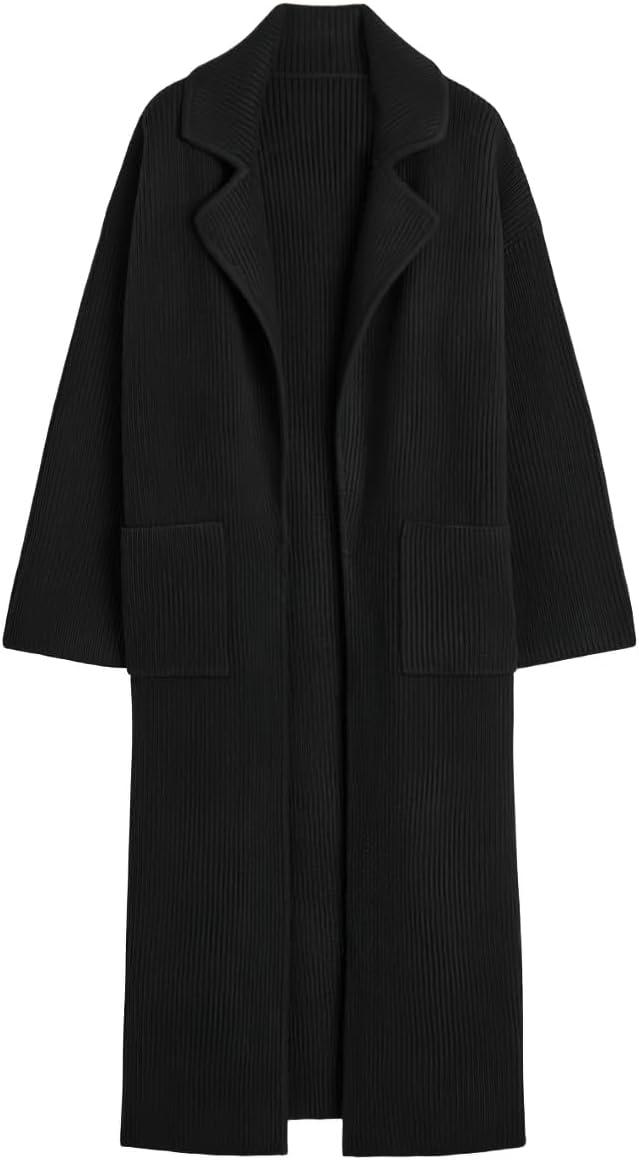 chouyatou Women’s Rib Knit Long Sweater Cardigan Notched Collar Open Front Blazer Sweater Coat Outerwear(Black)