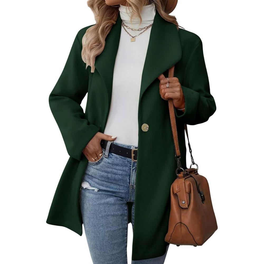 chouyatou Women’s Shawl Collar Wool Trench Coat Single Breasted Dressy Blazer Peacoat Jacket Overcoat(Green)