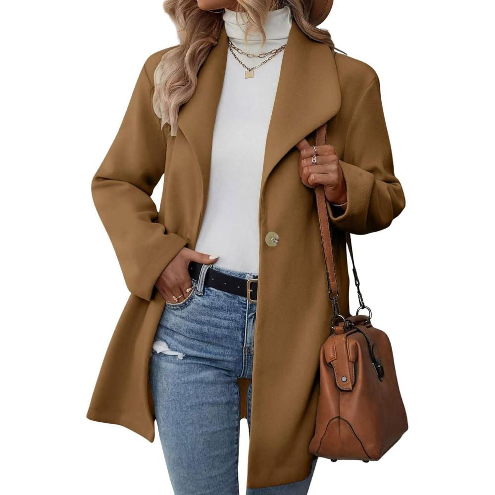 chouyatou Women’s Shawl Collar Wool Trench Coat Single Breasted Dressy Blazer Peacoat Jacket Overcoat(Khaki)