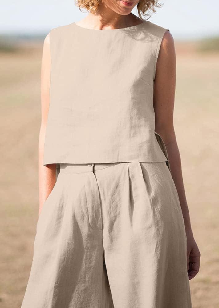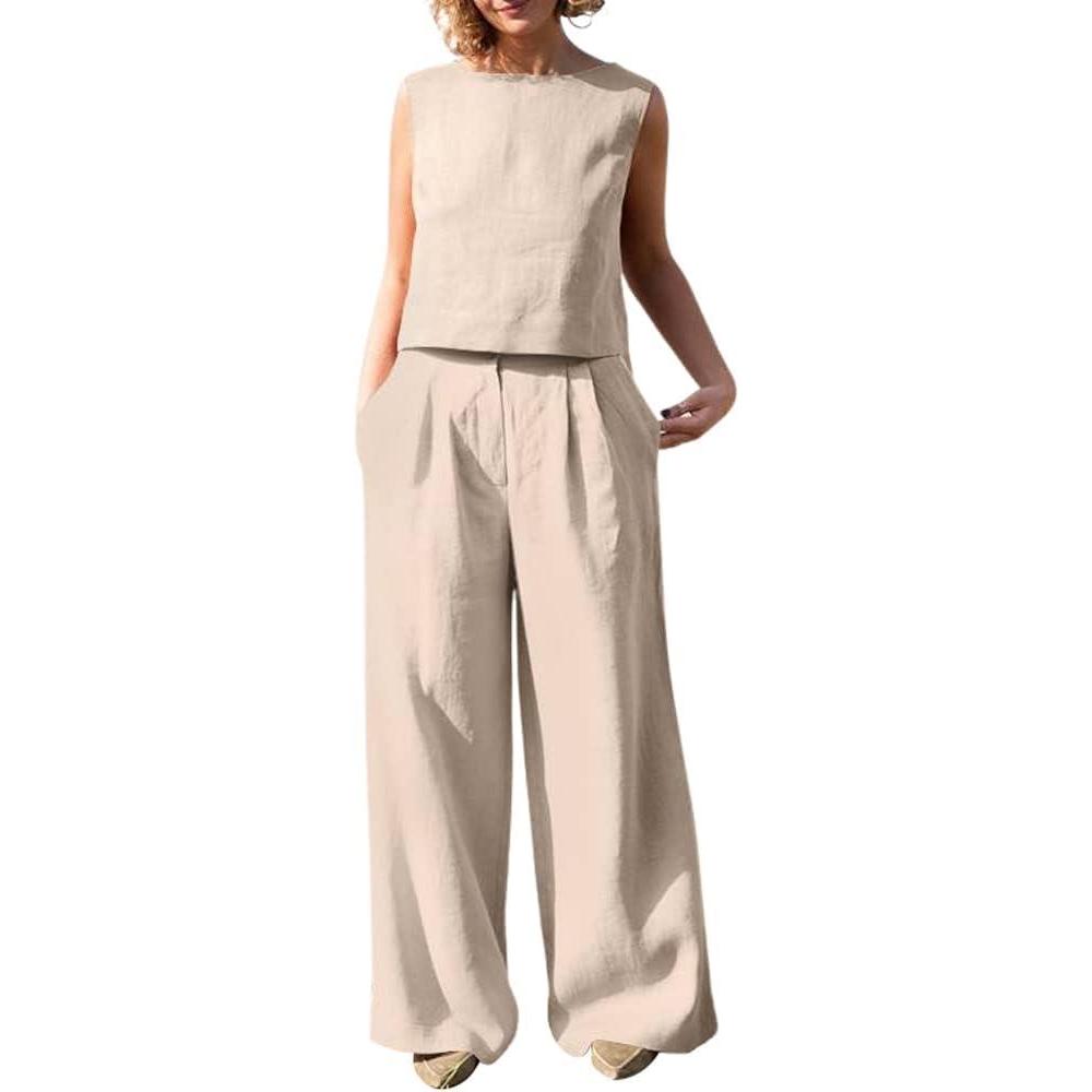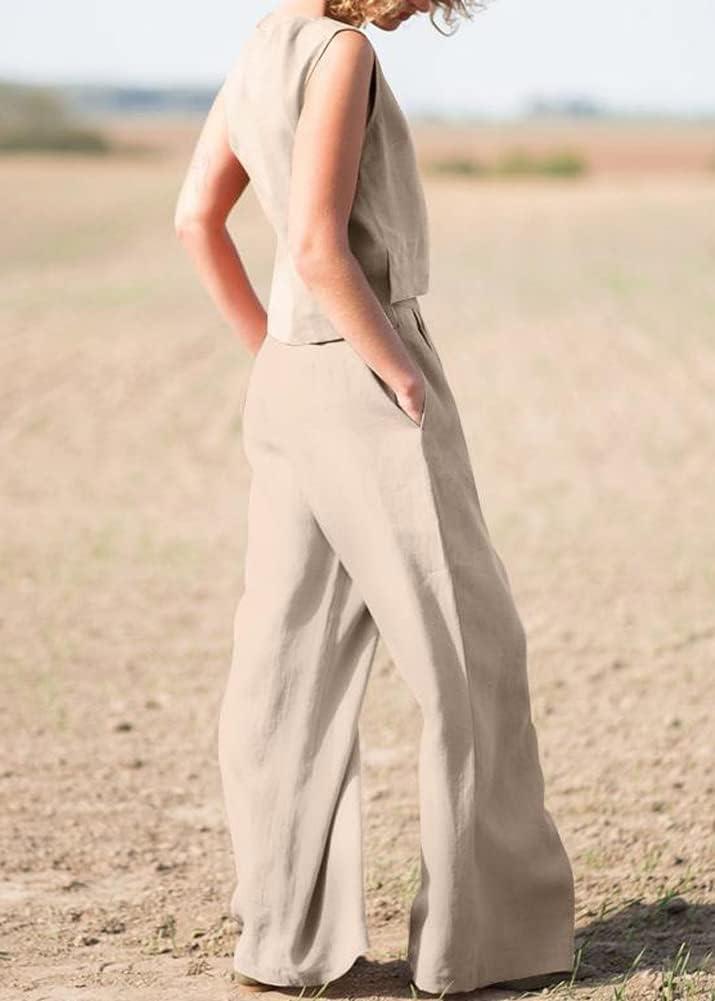 Save up to 40% on chouyatou Women’s Summer 2 Piece Outfits Vacation Linen Sleeveless Tank Top Wide Leg Pant Sets(Khaki) styles during our end-of-season sale.