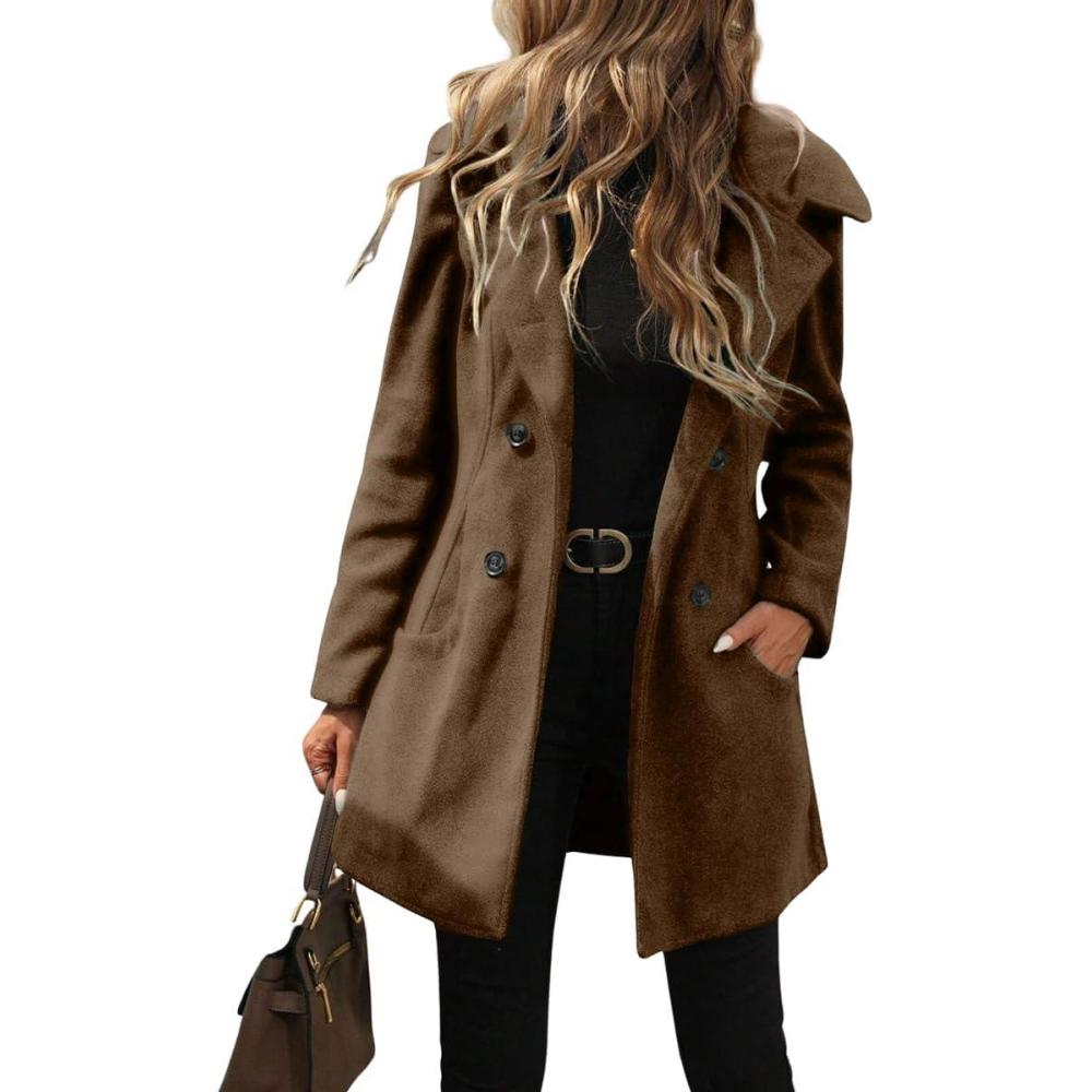 imagechouyatou Womens Winter Double Breasted Hooded Wool Coat Notch Collar Trench Coat PeacoatBrown