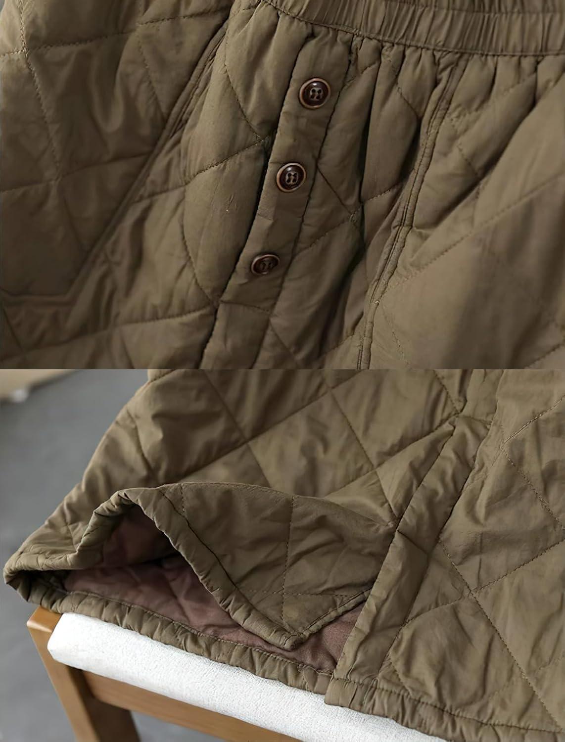 chouyatou Womens Winter Elastic Waist Padded A-Line Quilted Midi Long Puffer Insulated Skirt with Pocket(Dark Brown)