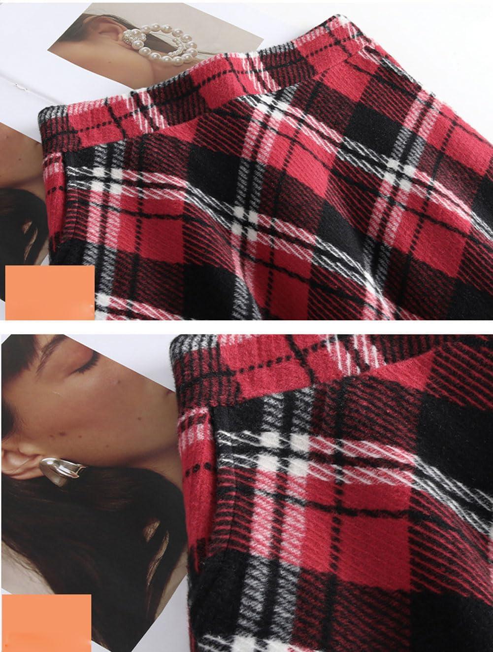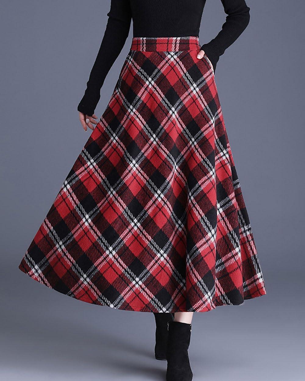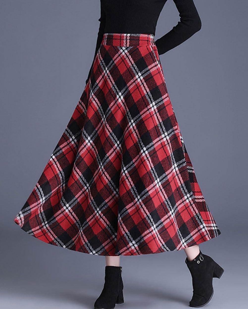 imagechouyatou Womens Winter Elastic Waist Wool Plaid Skirt Fall ALine Pleated Midi Long Skater SkirtRed White