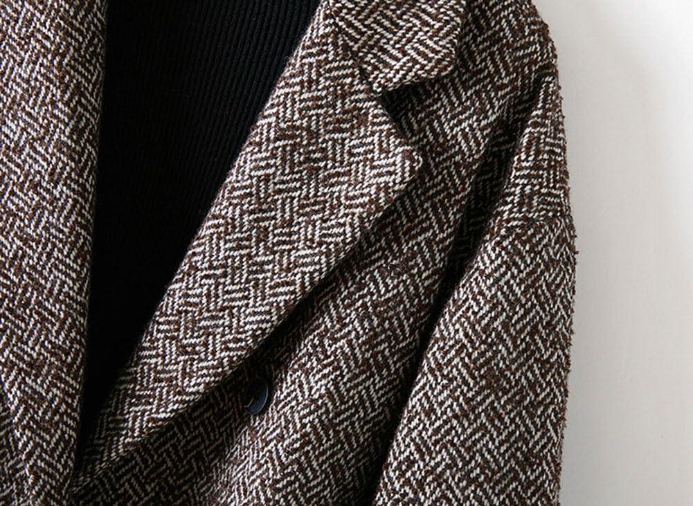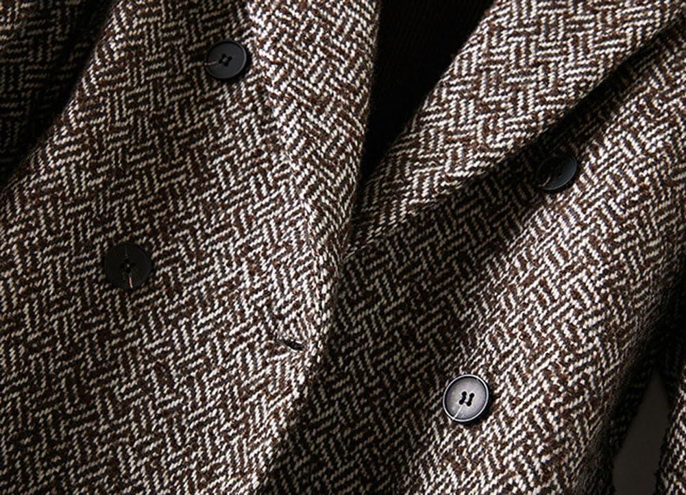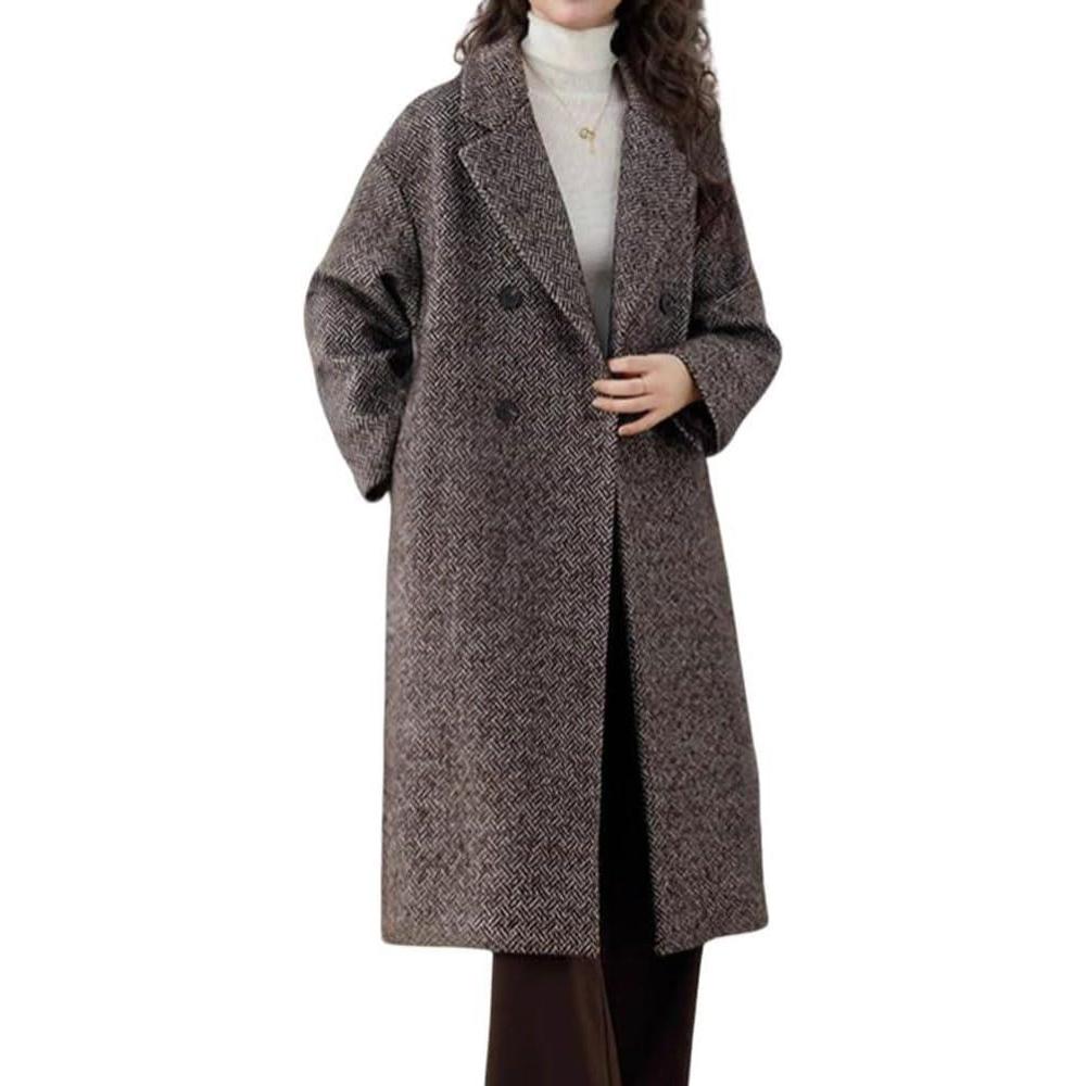 imagechouyatou Womens Winter Herringbone Stripe Long Wool Coat Double Breasted Dressy Casual Trench Coat OvercoatBrown