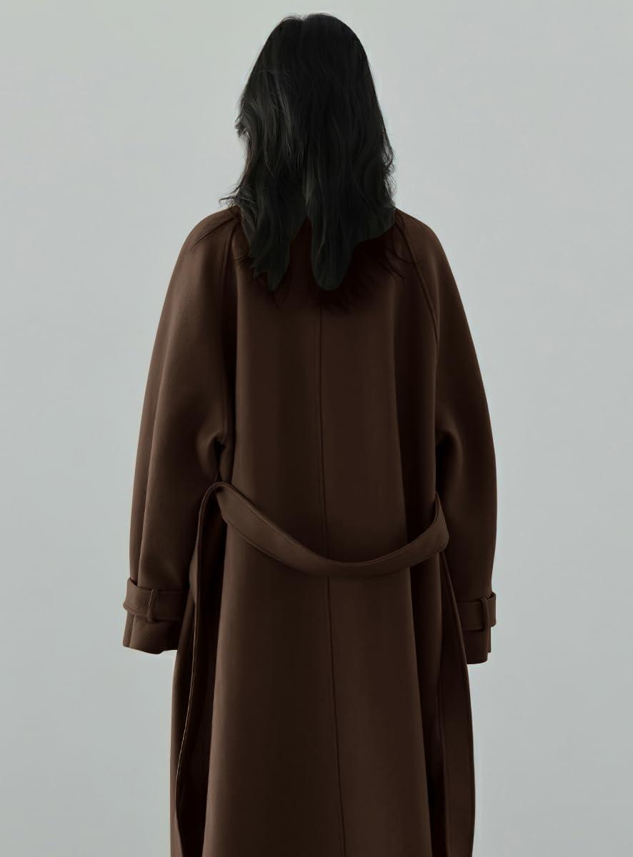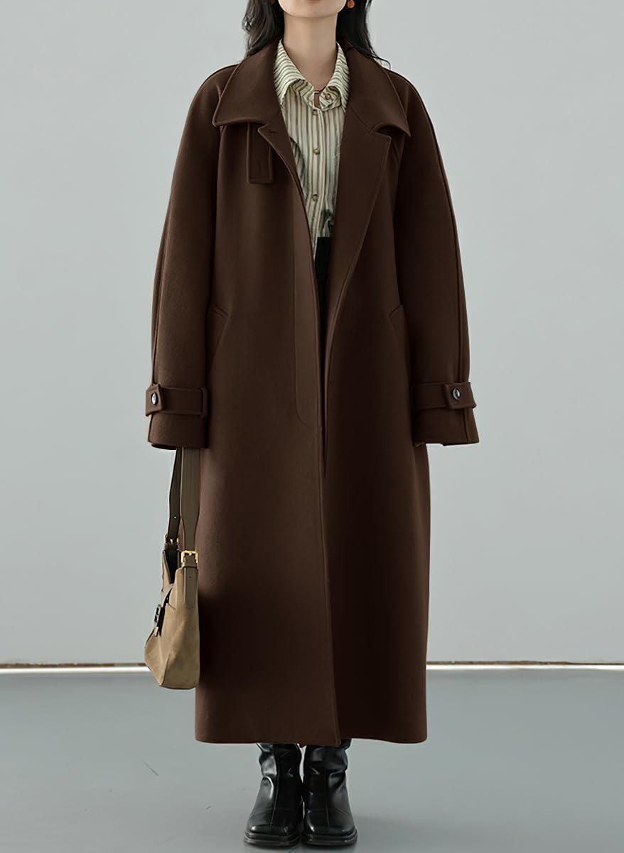 imagechouyatou Womens Winter Hidden Single Breasted Wool Coat Raglan Sleeve Business Long Wool OvercoatBrown