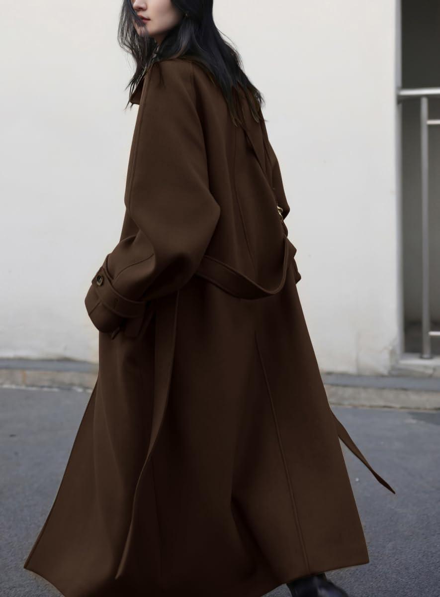 chouyatou Women’s Winter Hidden Single Breasted Wool Coat Raglan Sleeve Business Long Wool Overcoat(Brown)