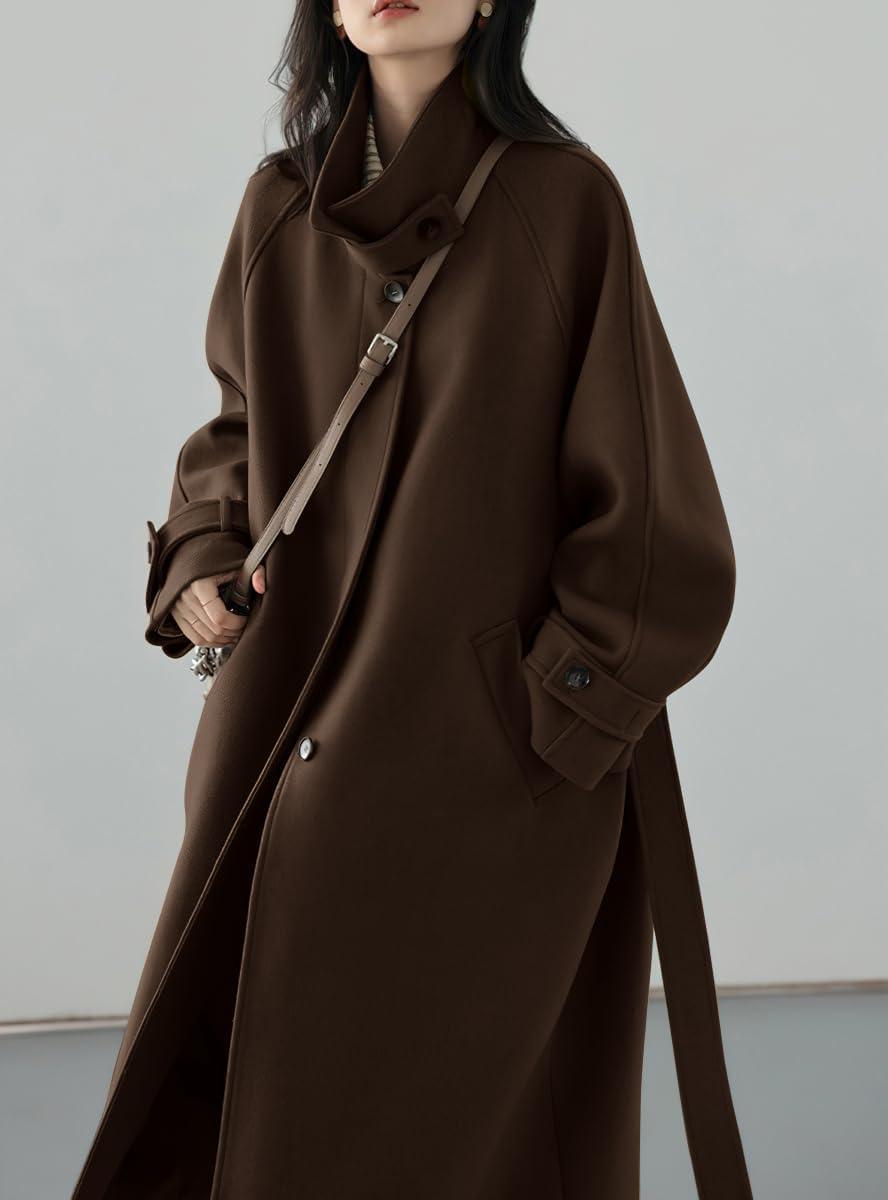 chouyatou Women’s Winter Hidden Single Breasted Wool Coat Raglan Sleeve Business Long Wool Overcoat(Coffee)