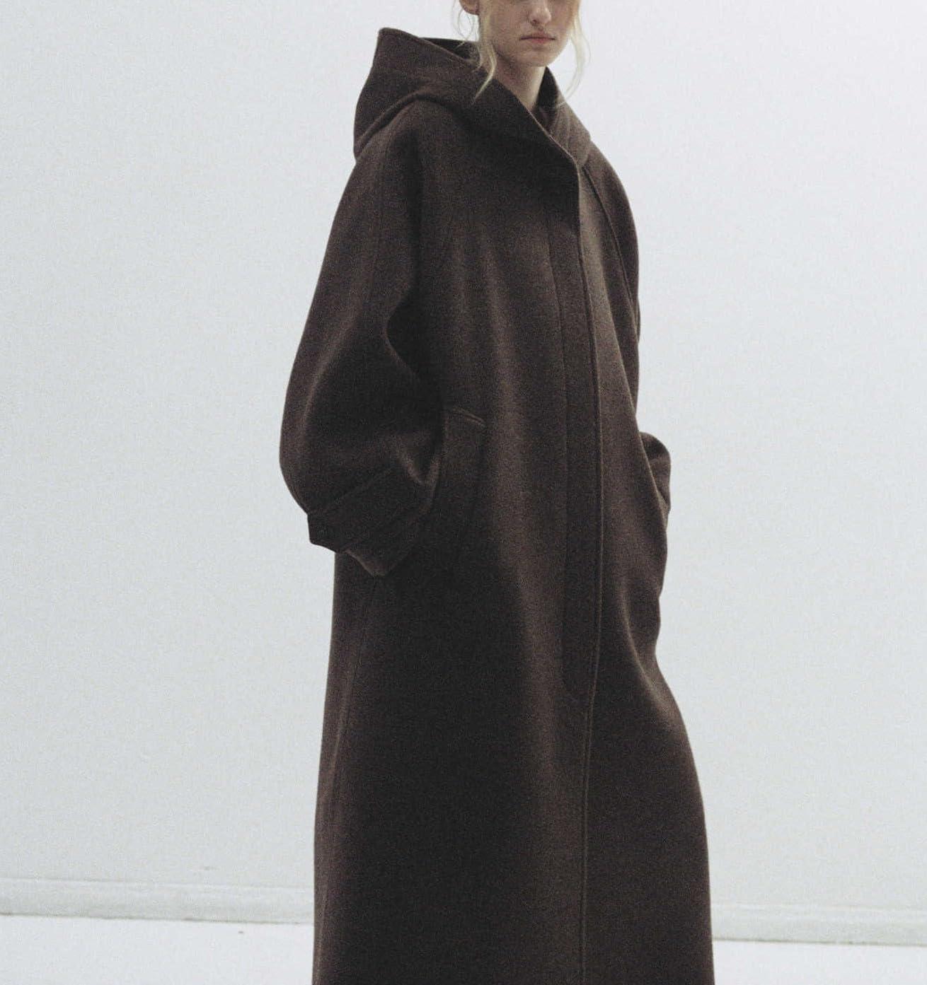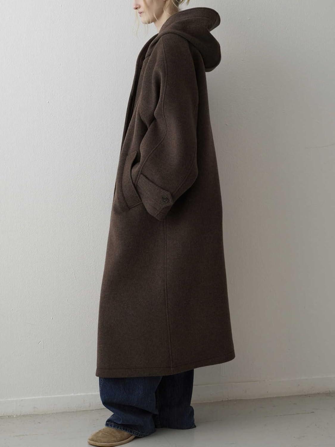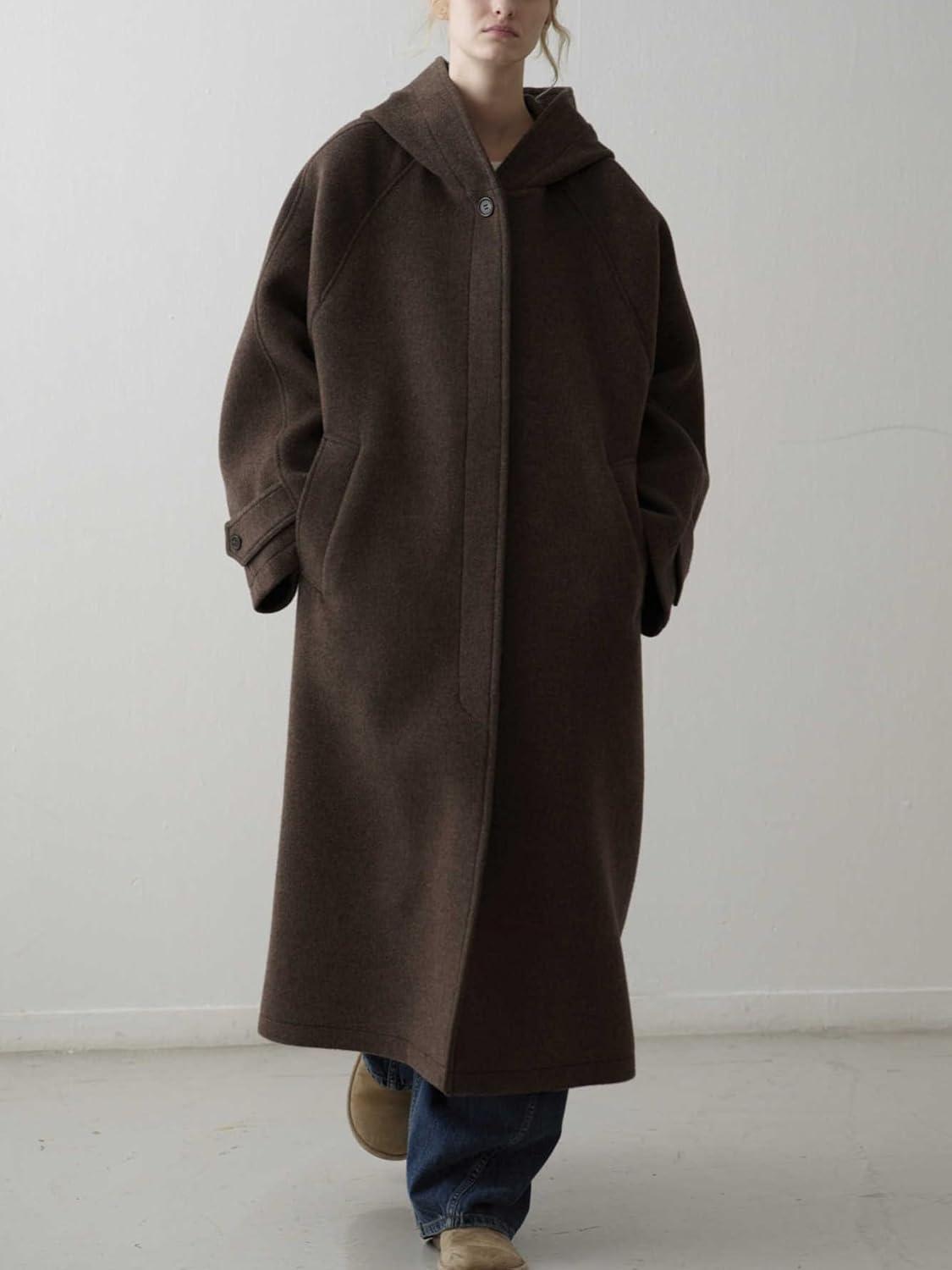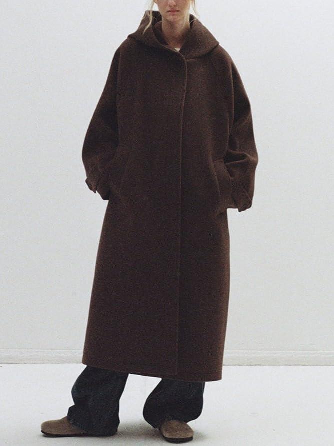 chouyatou Women's Winter Wool Trench Coat Single Breasted Warm Long Overcoat Jacket Coat with Hood(Brown)