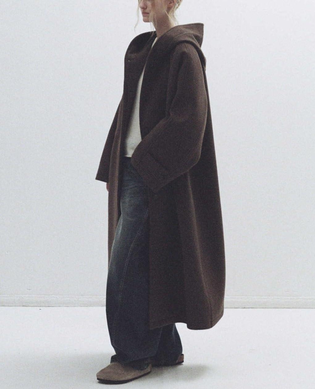imagechouyatou Womens Winter Wool Trench Coat Single Breasted Warm Long Overcoat Jacket Coat with HoodBrown