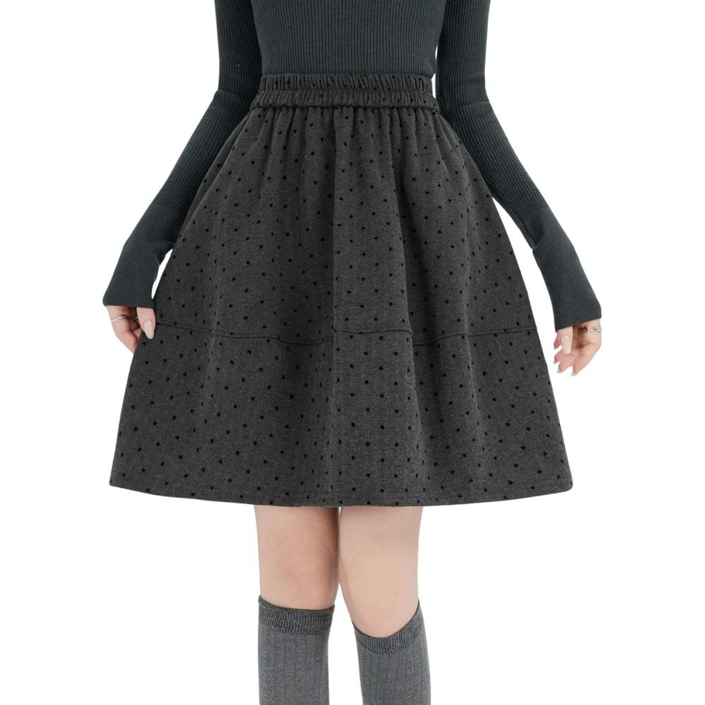 imagechouyatou Womens Wool Floral Pattern A Line Midi Skirt Elastic Waist Knee Length Wool Short Skirt with PocketsSolid Darkgray